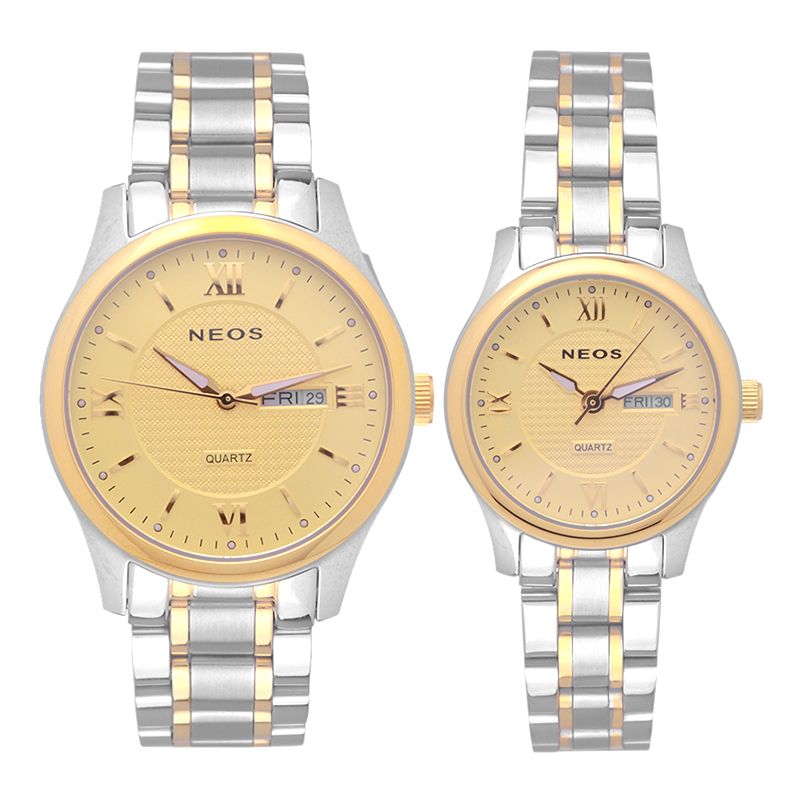 Đồng Hồ Cặp Neos N-30869 Dây Thép Bạc Phối Vàng