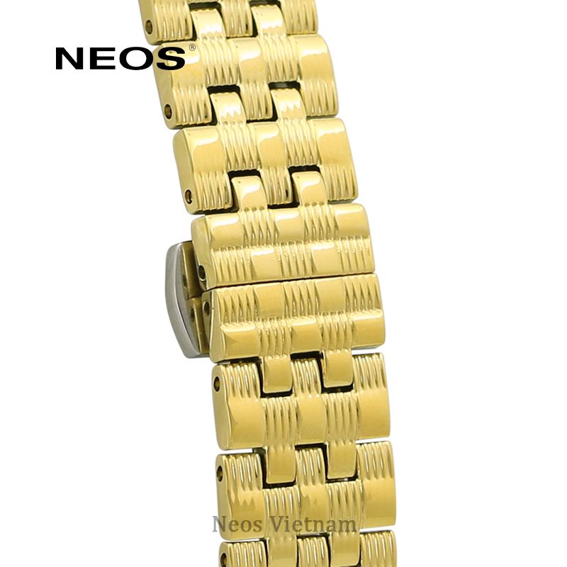 Đồng hồ chính hãng nữ Neos N-30901L đính kim cương được trang bị bộ dây vỏ thép không gỉ đạt chuẩn 316 cho dù bạn có môi hôi muối hay vô tình mang đi tắm biển thì cũng không bị gỉ set. không làm kích ứng da tay của bạn, đây là điều rất quan tâm đối với chị em phụ nữ, Nếu lỡ mua nhầm hàng xi giả thì có nguy cơ bông tróc hoen rỉ, nếu như da của bạn nhạy cảm thì nguy cơ sẽ bị nỗi mẫm đỏ, ngứa. Nhưng với bộ dây thép không gỉ của chiếc đồng hồ chính hãng nữ Neos N-30901L đính kim cương thì bạn hãy yên tâm nha. Bộ dây vỏ được mạ vàng cực kỳ sang trọng kết hợp với mặt đồng hồ màu trắng cho bạn cá tính sang chảnh.