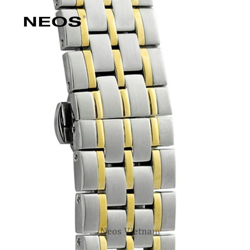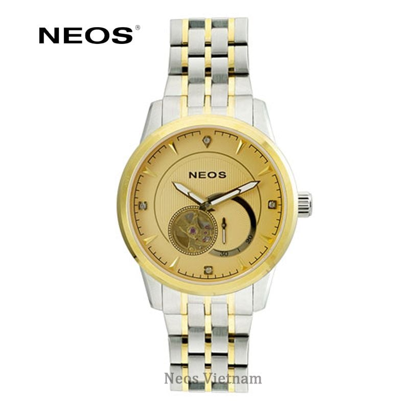 Đồng Hồ Cơ Lộ Máy Neos N-90114M Nam Dây Thép Bạc Phối Vàng