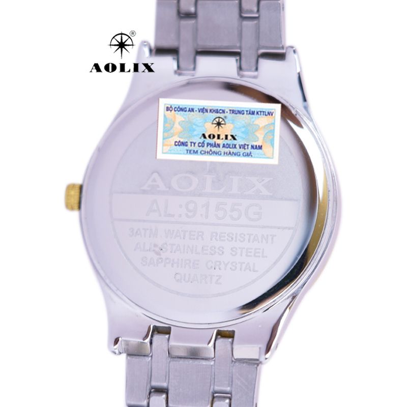 - Dưới nắp đáy của mỗi chiếc đồng hồ đều có tem chống giả do Bộ Công An cấp cho Công Ty Cổ Phần Aolix Việt Nam. Đặc điểm tem này phản quang khi dùng đèn tia laze chiếu vào thì những sợi quang học sẽ chiếu ngược lên để chống làm giả con tem. (xem hỉnh ảnh minh họa ở trên)