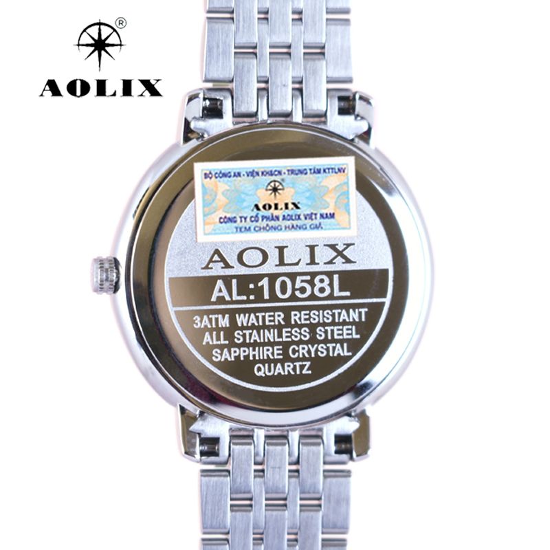 - Dưới nắp đáy của mỗi chiếc đồng hồ đều có tem chống giả do Bộ Công An cấp cho Công Ty Cổ Phần Aolix Việt Nam. Đặc điểm tem này phản quang khi dùng đèn tia laze chiếu vào thì những sợi quang học sẽ chiếu ngược lên để chống làm giả con tem. (xem hỉnh ảnh minh họa ở trên)