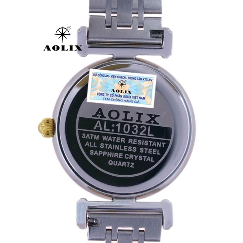 - Dưới nắp đáy của mỗi chiếc đồng hồ đều có tem chống giả do Bộ Công An cấp cho Công Ty Cổ Phần Aolix Việt Nam. Đặc điểm tem này phản quang khi dùng đèn tia laze chiếu vào thì những sợi quang học sẽ chiếu ngược lên để chống làm giả con tem. (xem hỉnh ảnh minh họa ở trên)