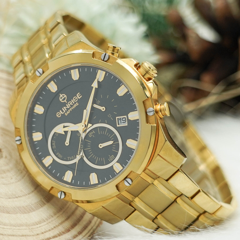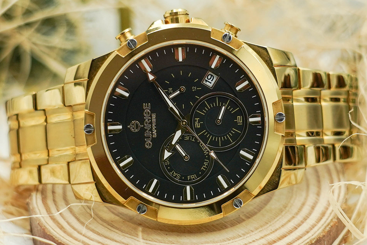 Đồng Hồ Sunrise Nam 6 Kim Dây Thép DM761SWA Sapphire Chính Hãng